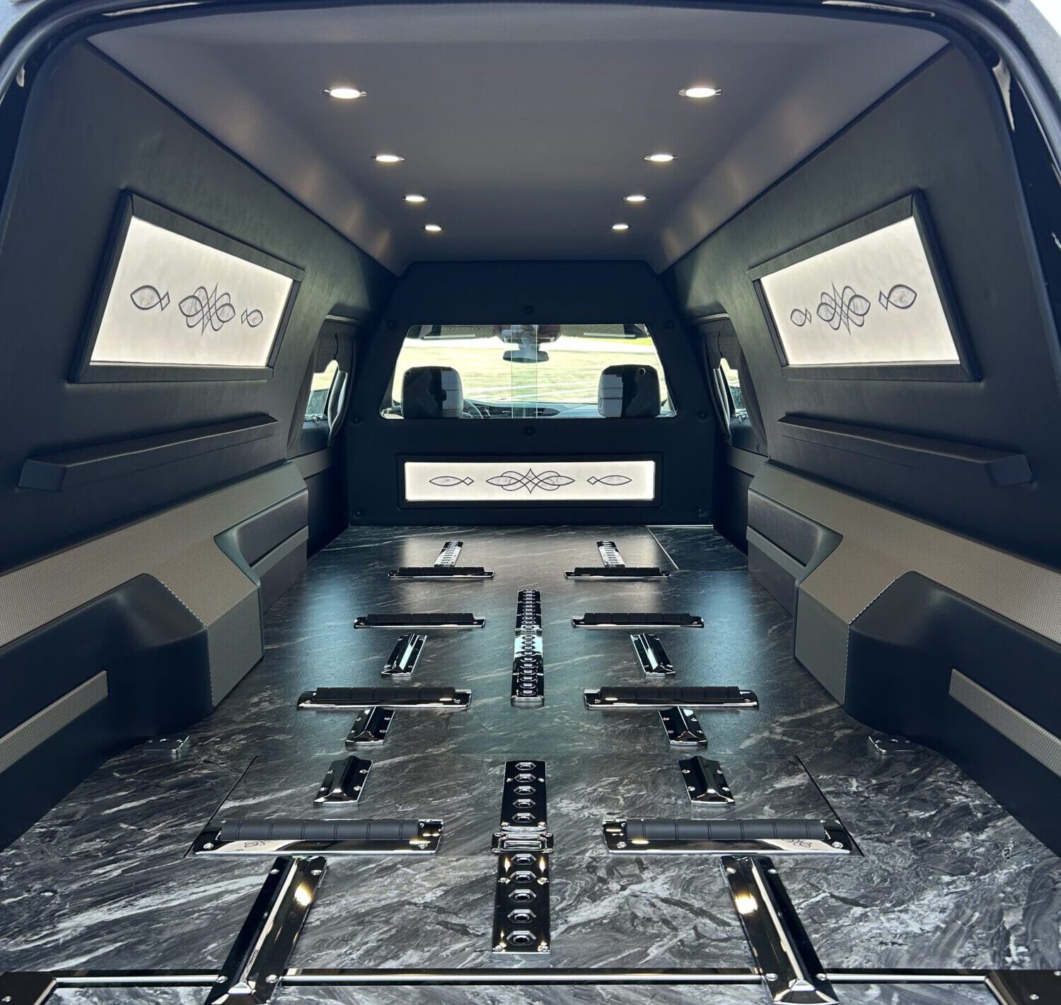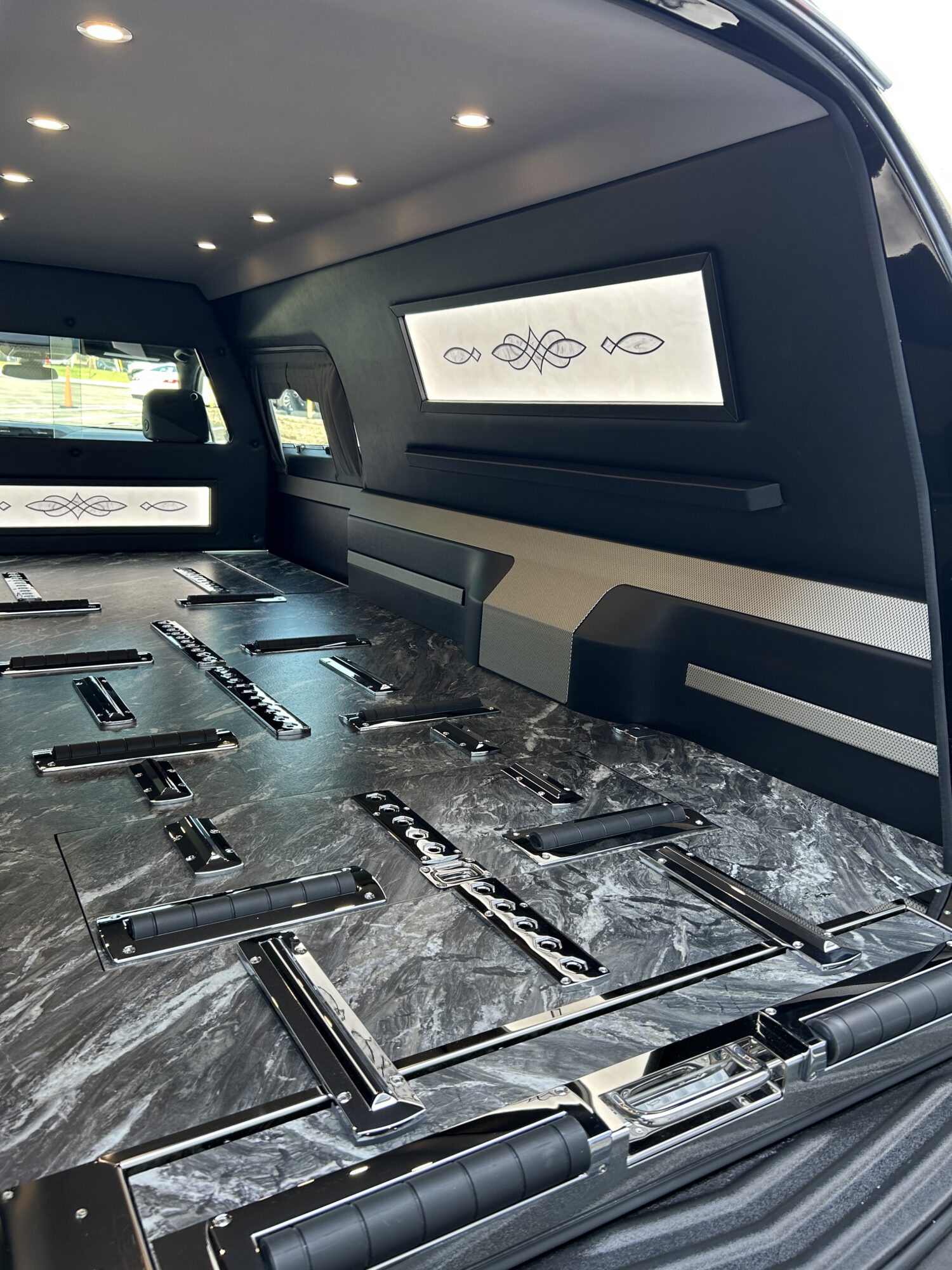 The details matter, so this top-rated funeral hearse is thoughtfully designed. Click here for full dimensions and performance details.